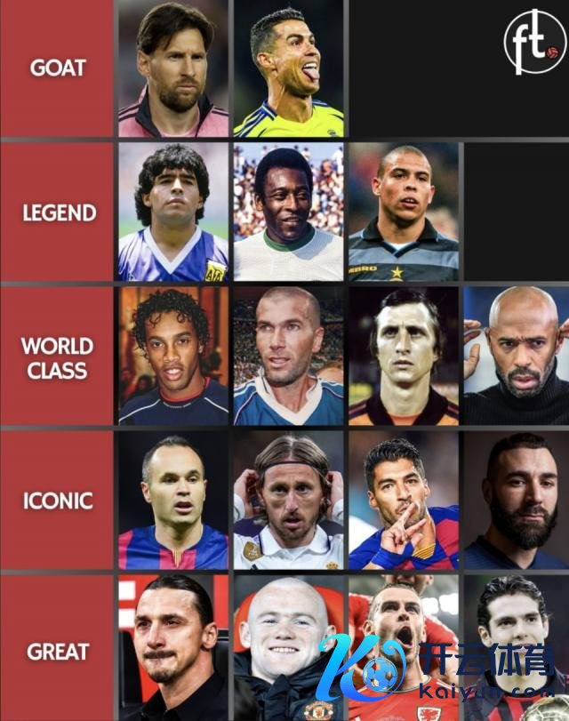 最底一档的突破更大:贝尔的欧冠次数很高,并且重要场的存在感也很强,按这张图强调硬荣誉的逻辑,他至少不该落到最底层;伊布则是典型的"智商和联赛统率力极强,但在欧冠和天下杯这种硬冠上短板赫然",放在最底层反而更允洽这张图的取向。合座论断等于:顶层和据说层基本稳,中间两层的错位主要体目下克鲁伊夫偏低、本泽马和莫德里奇偏低、贝尔偏低,而亨利和苏亚雷斯更容易被拿来质疑位置。