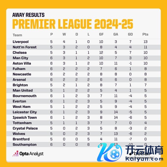 本赛季英超主场积分榜:布伦特福德——16利物浦——15曼城——13热刺——12布莱顿——12阿森纳——11伯恩茅斯——10富勒姆——10纽卡——10曼联——10切尔西——9维拉——8诺丁汉丛林——8西汉姆——7莱斯特城——5埃弗顿——5水晶宫——5南安普顿——4狼队——4伊普斯维奇——3本赛季英超客场积分榜:利物浦——13诺丁汉丛林——11切尔西——10曼城——10维拉——10富勒姆——8纽卡——