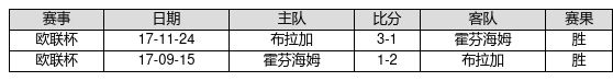 布拉加 VS 霍芬海姆两队近10年的交战次数为2场,布拉加2胜0平0负,赢球概率为100.0%,平局概率为0.0%,输球概率为0.0%。