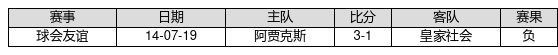 皇家社会 VS 阿贾克斯两队近10年的交战次数为1场,皇家社会0胜0平1负,赢球概率为0.0%,平局概率为0.0%,输球概率为100.0%。
