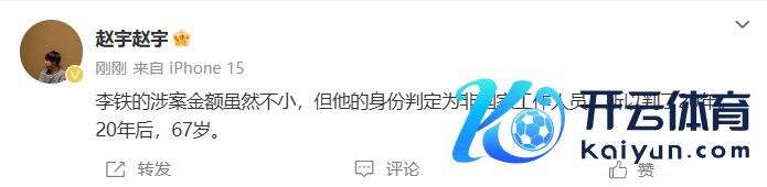 记者赵宇写谈:李铁的涉案金额固然不小,但他的身份判定为非国度使命主谈主员,是以判了20年。20年后体育集锦,67岁。