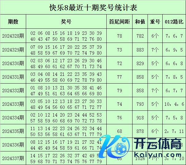 福彩称心8第2024337期开奖转头:14 15 17 22 26 32 37 42 49 50 59 68 70 71 73 74 75 76 77 79,其中奖号首尾间距为65,和值为1026,012路比为3:7:10,包含7组同尾号码:50-70、22-32-42、14-74、15-75、26-76、17-37-77、49-59-79,开出7个重号:15、17、32、49、59、71、74。