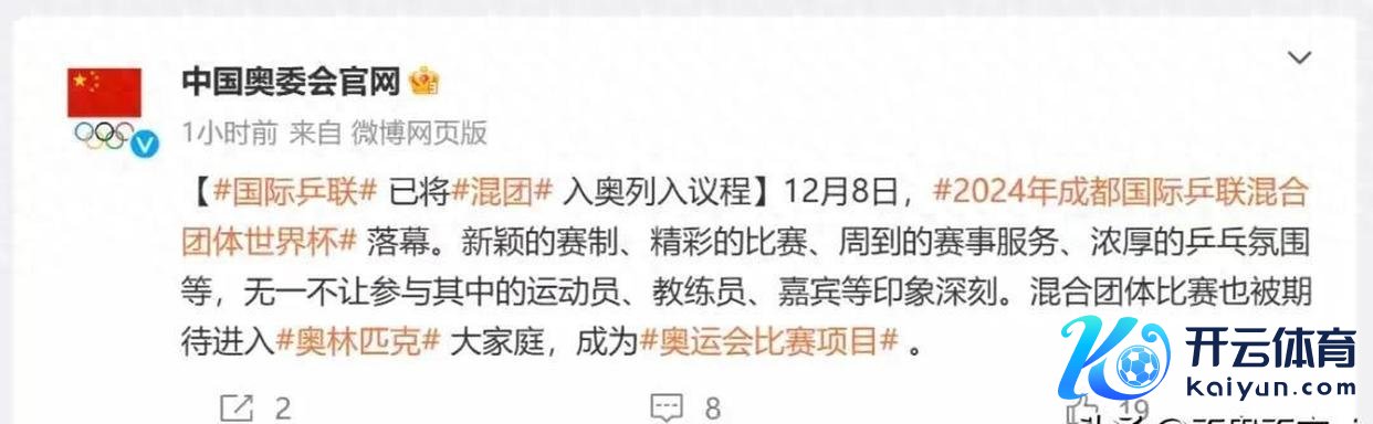 这传闻是如何来的呢?主要有两个原因。一是刚约束的第二届国外乒联搀杂团体寰宇杯,二是中国奥委会官网的微博上也提到过这个事儿。