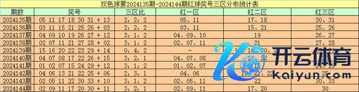 双色球第2024144期奖号为:02 09 11 17 20 30 + 11,红球三区比为3:2:1。