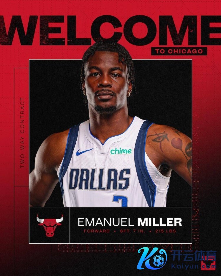 12月29日讯 公牛官方今天文书,球队裁掉后卫DJ-斯图尔德,并与伊曼纽尔-米勒签下双向公约。