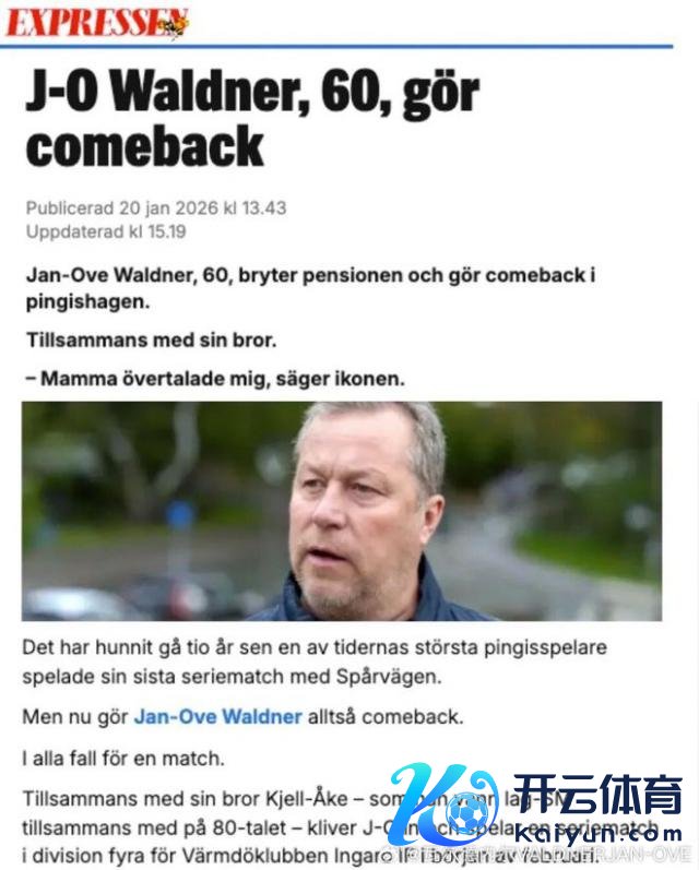 老瓦将代表英厄勒乌俱乐部出战对阵布俱乐部的焦点德比战。恰巧的是,老瓦的哥哥——前瑞典乒协官员、功勋教师谢尔 - 奥克 · 瓦尔德内尔咫尺抓掌英厄勒乌俱乐部的乒乓球分部,同期亦然球队的现役队员。